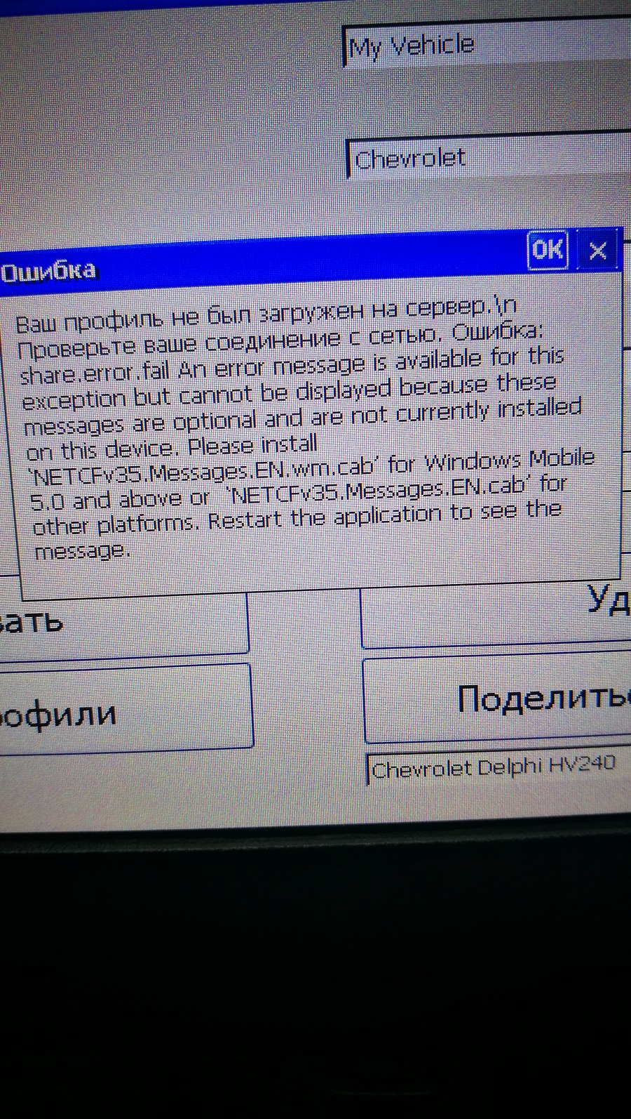 ДВС сообществу. Пытаюсь "подружить" HobD со штатной ММС Нивы Шевроле 2019. полный 0. Нет такой машины в профиле, попытался создать, пишет , что профиль не был загружен на сервер. Как победить это - не знаю. Кто загружал на Шниву, подскажите, плизз.